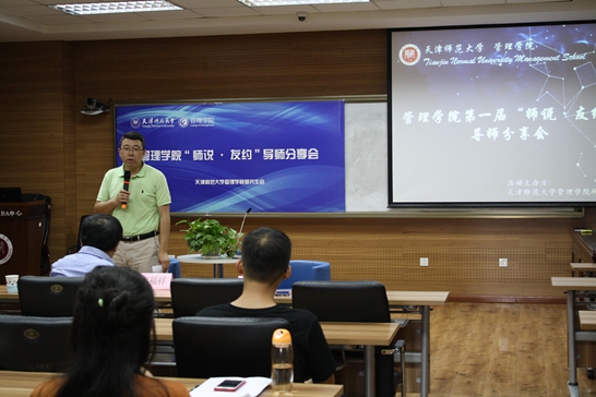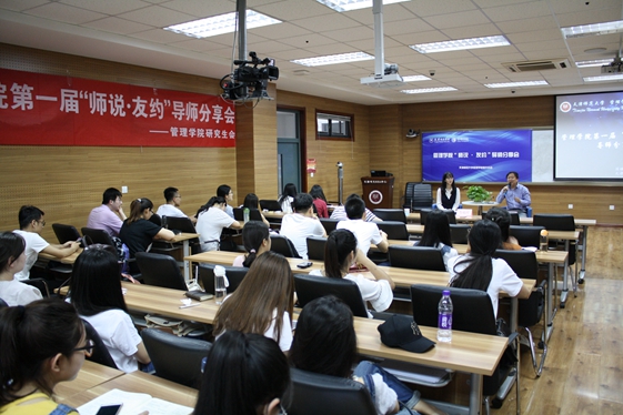 5月15日下午3点,由管理学院研究生会主办的第一届“师说·友约”导师分享会在兴文楼A219举行。管理学院院长韦福祥教授作为嘉宾参加了活动。